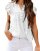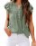 Features: V Neck, Lace Crochet, Short Flutter Sleeves, Button Down.
