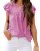 Features: V Neck, Lace Crochet, Short Flutter Sleeves, Button Down.